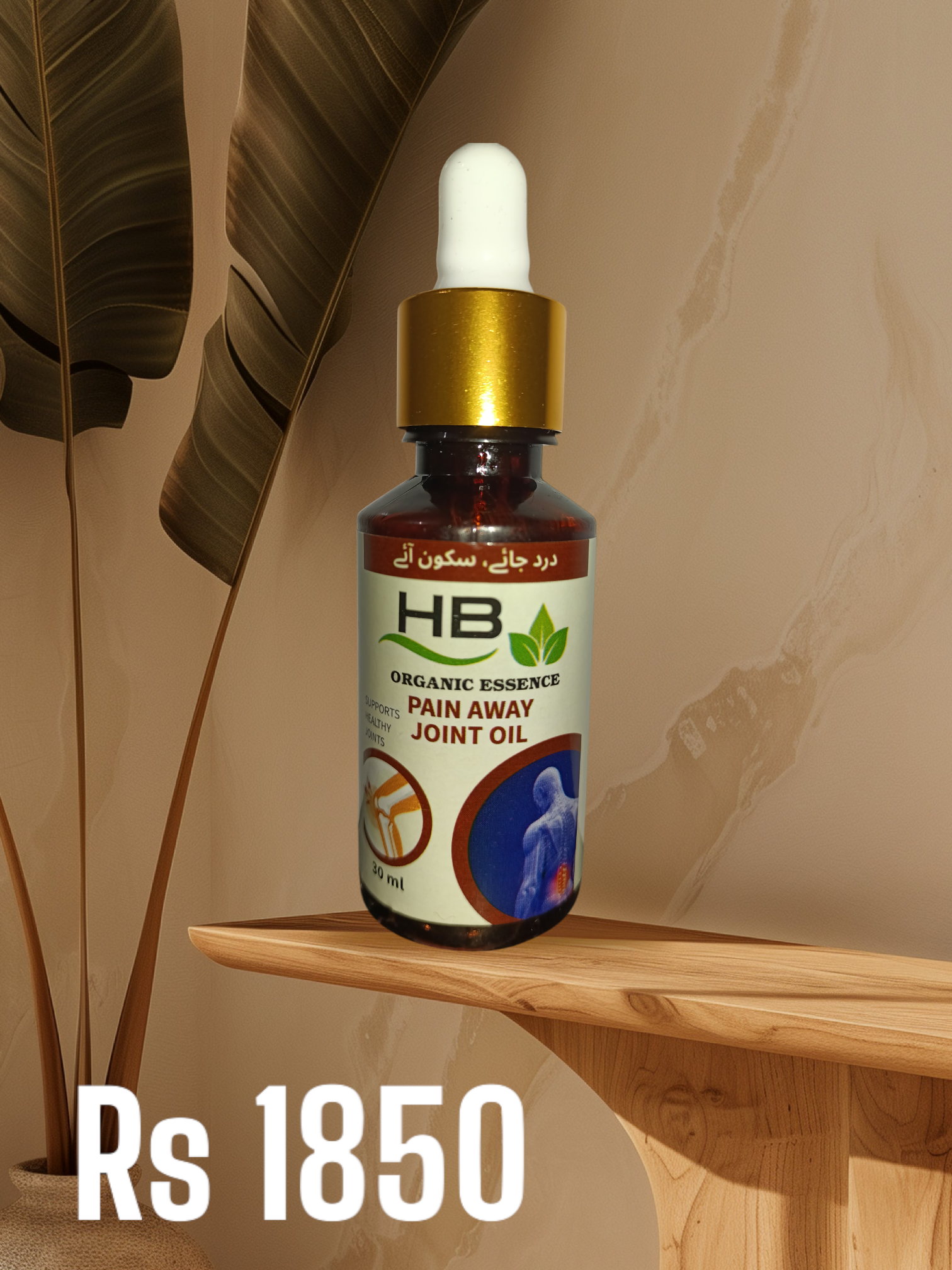 HB Organic Essence Pain Away Joint Oil is a powerful herbal formula designed to provide fast, soothing relief from joint and muscle pain. Whether you are suffering from knee pain, back pain, shoulder stiffness, neck tension, or leg aches, this oil helps relax joints and improve mobility naturally.